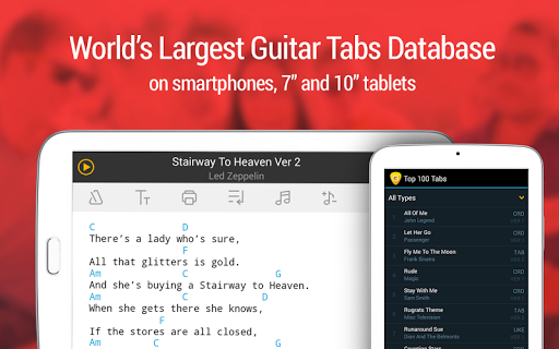 Throw away your song books and start jamming with GuitarTapp today! Search and view 500,000+ guitar tabs, chords, power tabs, bass tabs and drum tabs. Has autoscroll feature, large chords