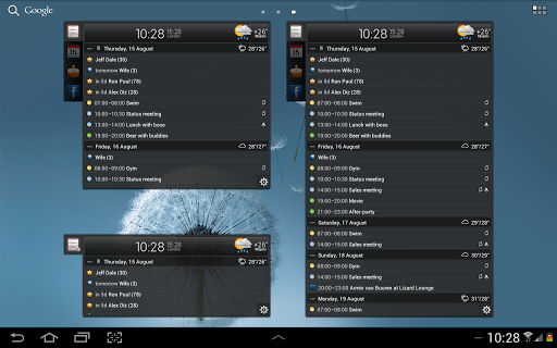 : All-in-One Agenda widget shows events of your digital life be it calendar appointments, Facebook events, birthdays or weather forecast, and allows you to manage them with ease.While keeping track on tight business schedule, it's